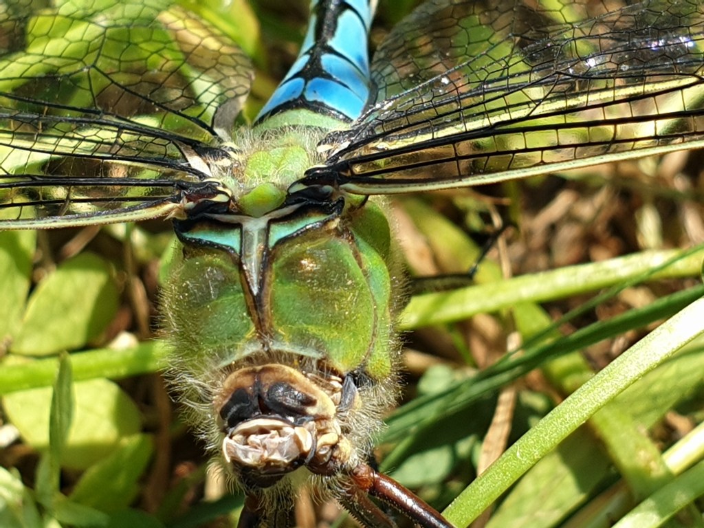 Op 7 juni in het jaar 2019 ontweek ik deze heer of dame op een fietspad langs de IJssel, ter hoogte van Cortenoever. Het wezen lag op zijn rug, ik stopte en keerde terug. Zo goed en zo kwaad als ik kon heb ik eerste hulp verleend. Nu heb ik daar geen training in gehad, niet voor mensen en niet voor dieren, dus hoe het precies is bevallen weet ik niet helemaal. Aan de snelle hartslag te zien, als tenminste het uitzetten en weer inkrimpen van het turquoise langwerpige lijf overeenkomt met de hartslag, was het hoe dan ook een moeilijk verhaal. Al was het niet echt een verhaal. Een mens was er met volle aandacht en deed wat dacht dat (misschien) goed was, en het dier deed wat het kon: het leven zijn in een lichaam dat hoogst waarschijnlijk binnen afzienbare tijd zonder de frequentie van deze wezenlijke essentie zou zijn. Nadat de libel van het betonnen fietspad in het gras was geplaatst, werd na enige tijd met de grootste voorzichtigheid water gevoerd door de mens aan het dier. Misschien was het van de regen in de drup (figuurlijk gesproken, de zon scheen) want de hartslag leek niet naar beneden te gaan en er verschenen mieren die op het lijf van de libel klommen. Zoals een hond water van zich af kan schudden, zo trilde de libel (of drakenvlieg, als je er nog meer van wilt maken dan het al is) de mieren van zijn lijf. Omdat ik ook niet wist wat verder te doen heb ik er een tijdje gezeten. Toen besloot ik dat het was wat het was, leven, en op een gegeven moment de dood, of de verandering van leven, zo je wilt. De libel leefde nog maar het zag er niet rooskleurig uit, al bestond ook de mogelijkheid dat hij zich zou herpakken (totaal verkeerde term, alsof alles ‘beheersbaar’ en bepaald kan worden) en op zou vliegen. Maar ik voelde dus dat ik niets meer kon doen en ook dat mijn leven verder ging, ik liet de libel achter en fietste verder zonder de afloop te kennen.