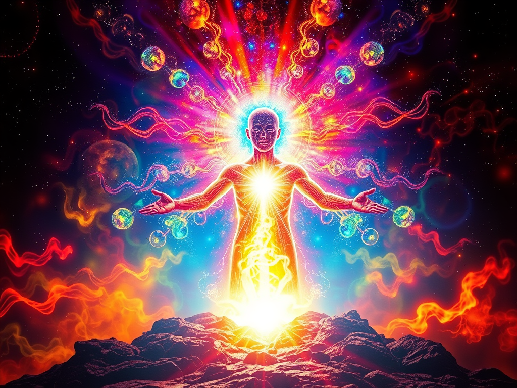 Dat wordt geparasiteerd en bezet. Daar zitten eigenlijk een soort van microbische entiteiten op. Die trekken, die gebruiken de scheppingskracht, die deeltjes, om heel grote computersystemen—het zijn geen computers, het zijn organische werelden maar ik noem het computersystemen— om die te voorzien van onuitputtelijke hoeveelheid kracht. Net als dat er op Aarde vliegdekschepen zijn met een kernreactor aan boord die honderden jaren kunnen doorvaren, dat raakt nooit op. En dat is eigenlijk wie wij zijn. Wij zijn scheppende krachten.